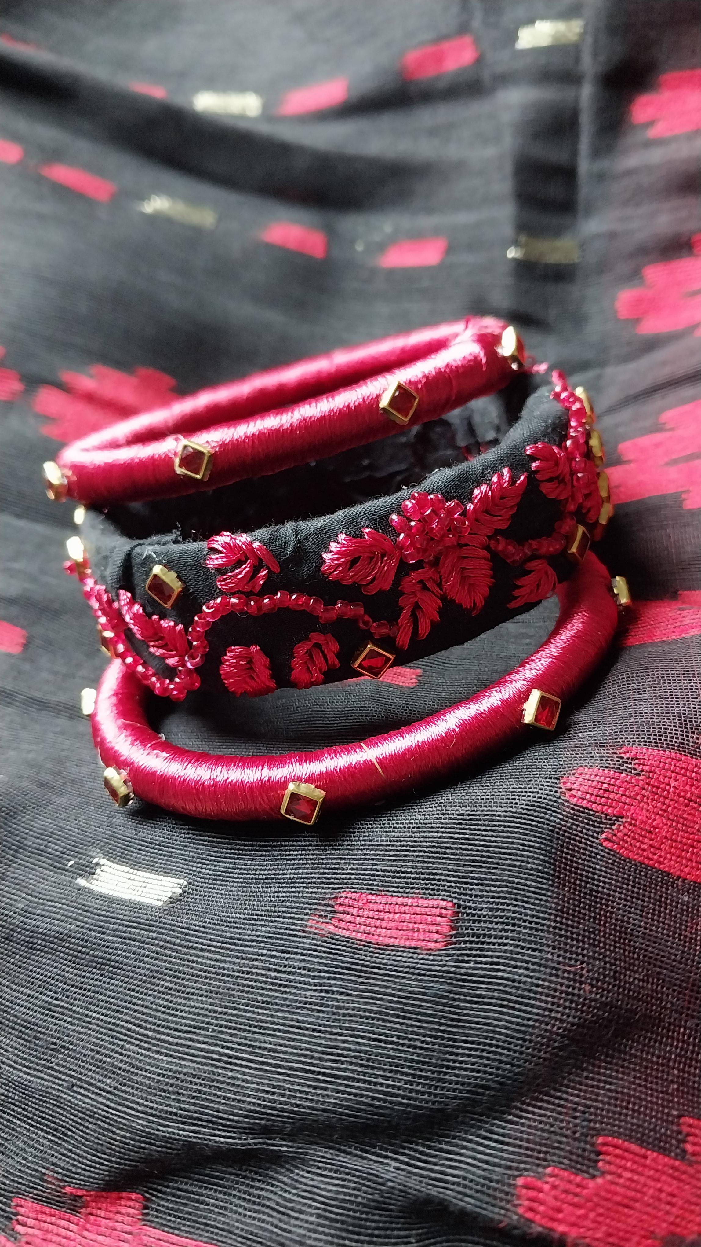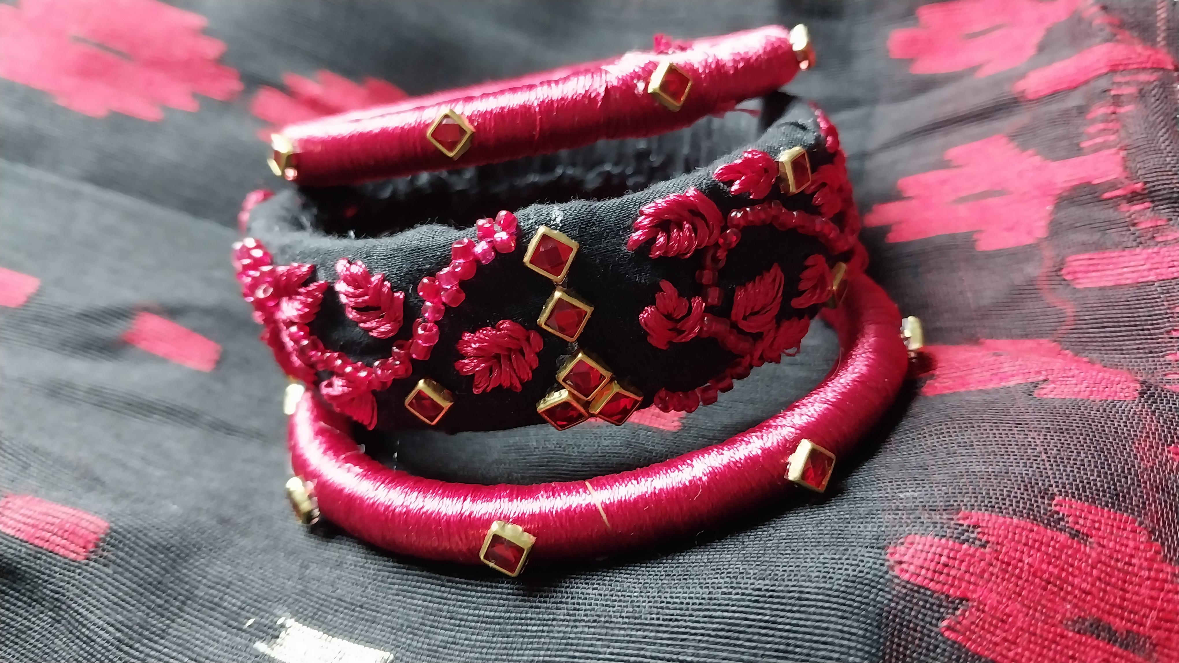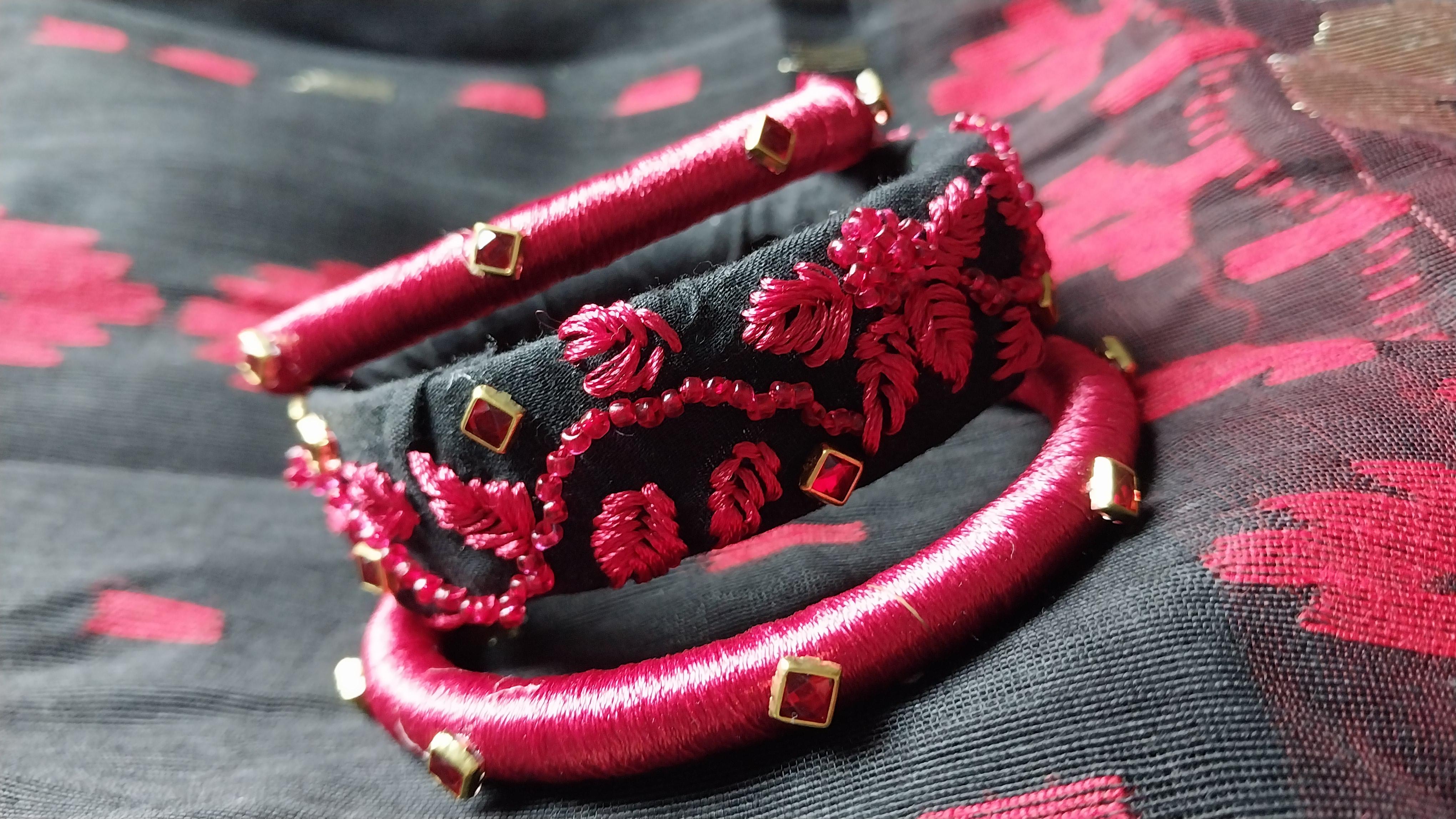 হাতের তৈরি লাল-কালো ডিজাইনার চুড়ি সেট – ঐতিহ্যবাহী ফ্যাশন জুয়েলারি